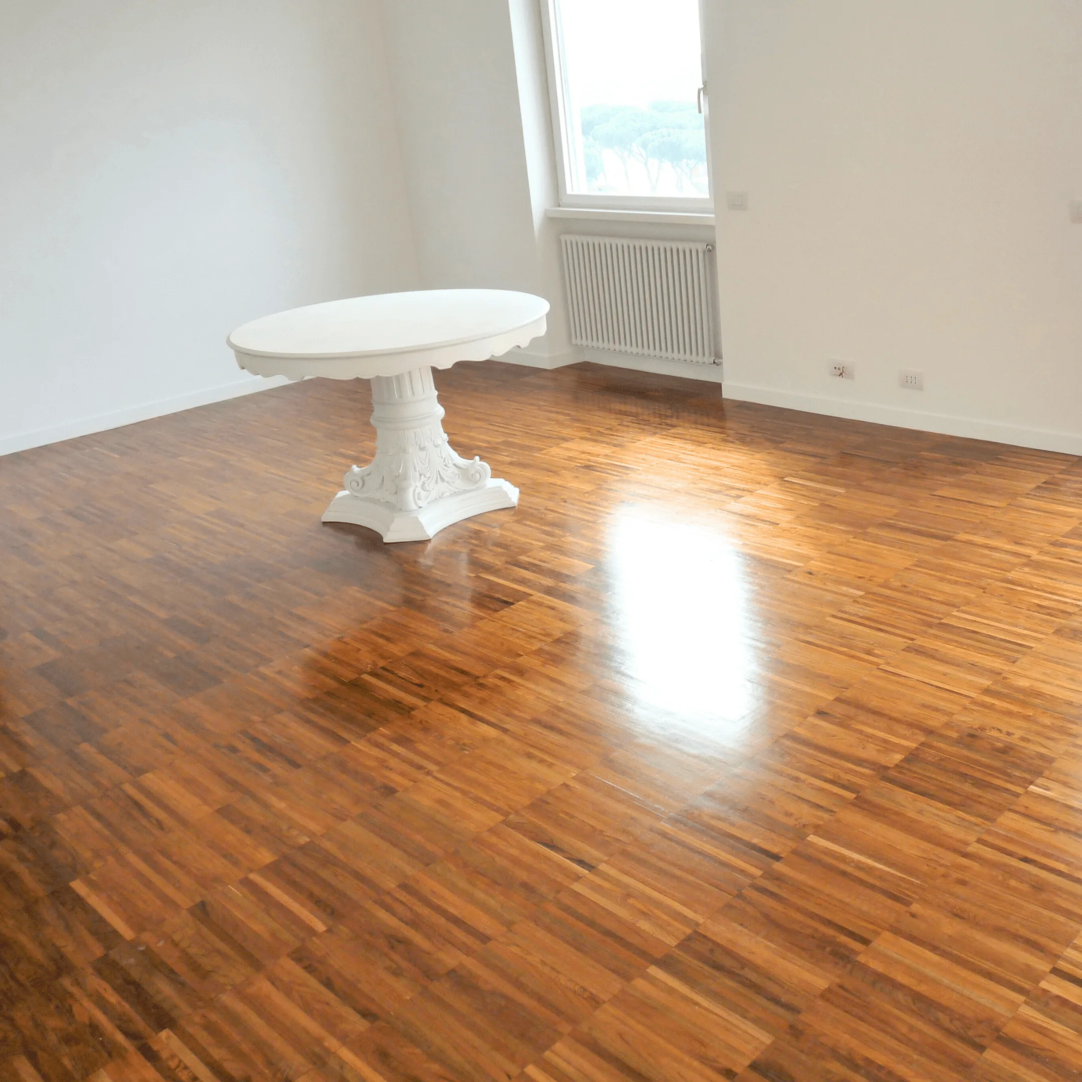 Composé de fines baguettes assemblées avec précision, ce parquet se distingue par son motif graphique et son charme authentique. Robuste et durable, il est particulièrement apprécié pour son esthétique unique, son excellent comportement dans le temps et sa capacité à apporter du caractère aux espaces.