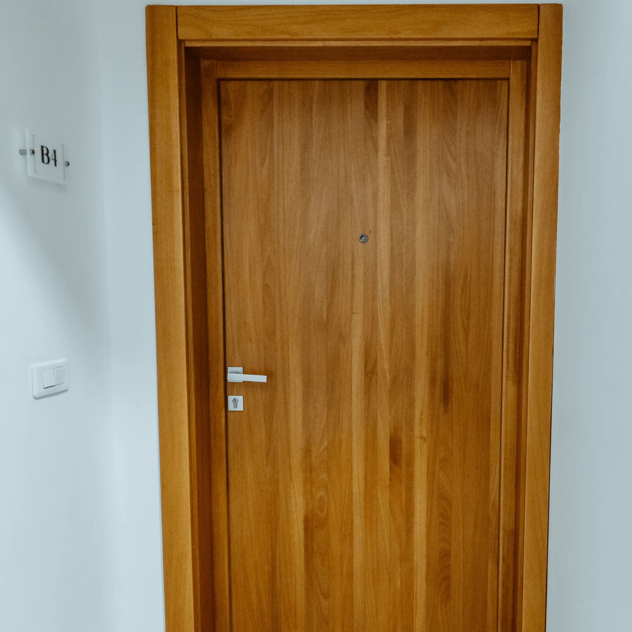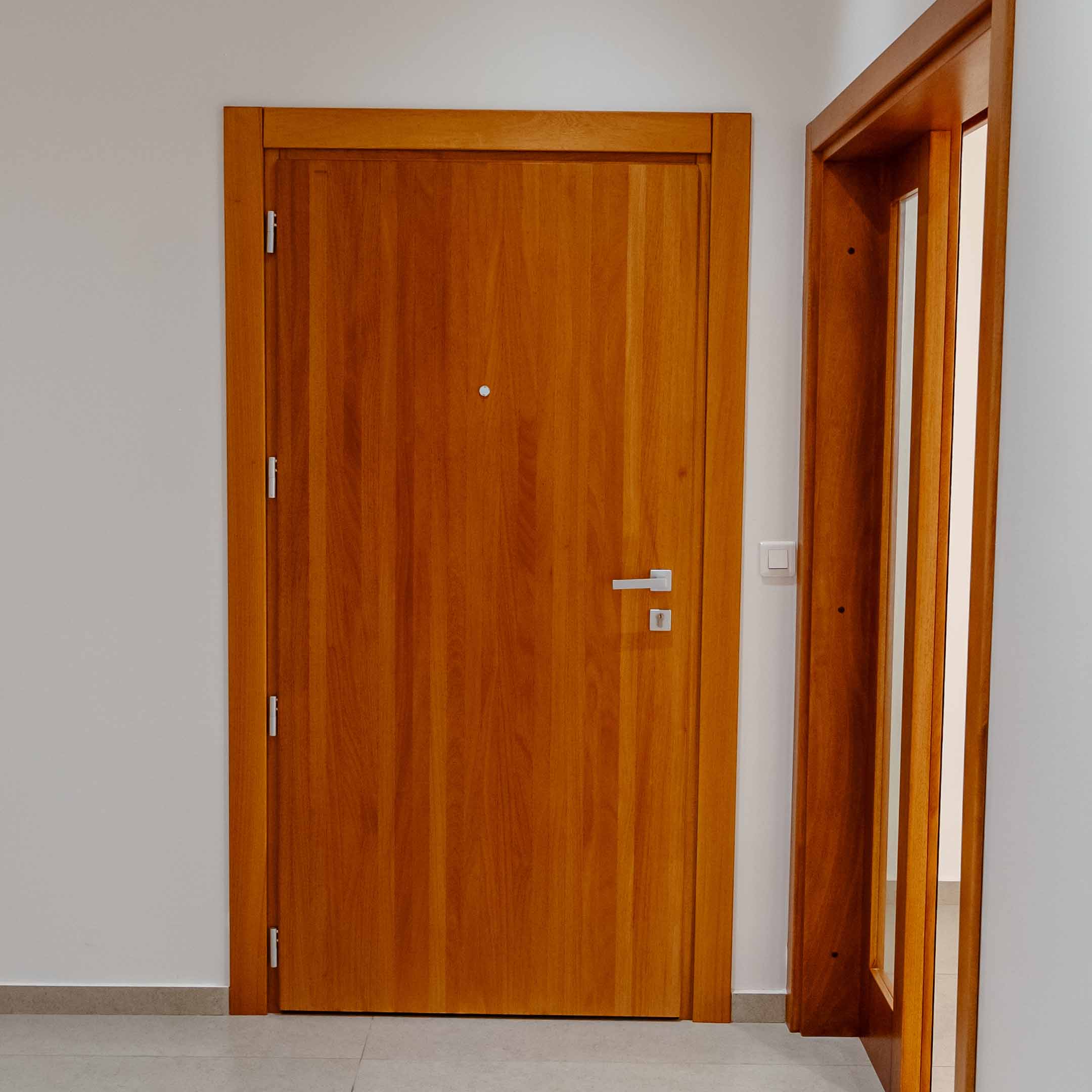 portes d’entrée massives équipées de poignées carrées et de serrures 3 points,
