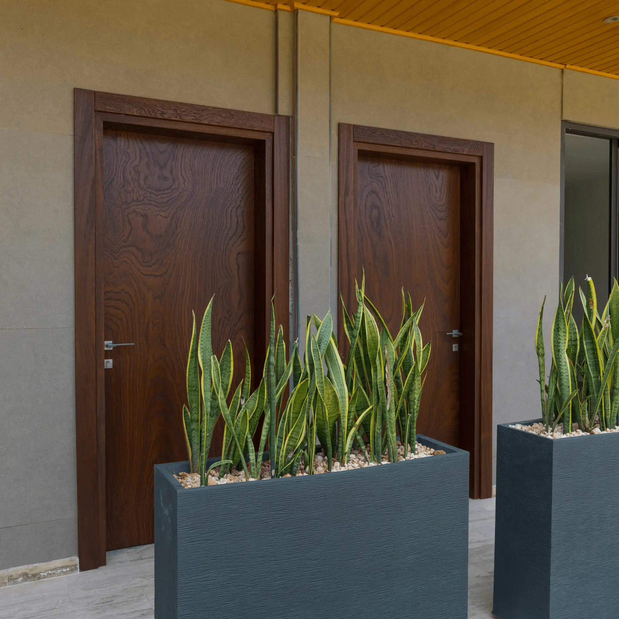 Un ensemble sobre et raffiné qui reflète la quiétude de la vue lagunaire et l’harmonie du bois noble.